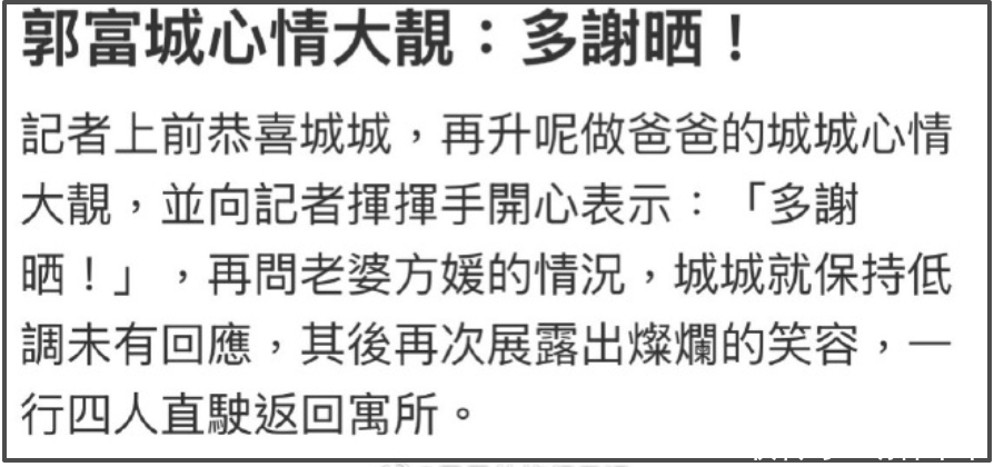 港媒新闻出来之后,郭富城也火速官宣了三胎喜讯。